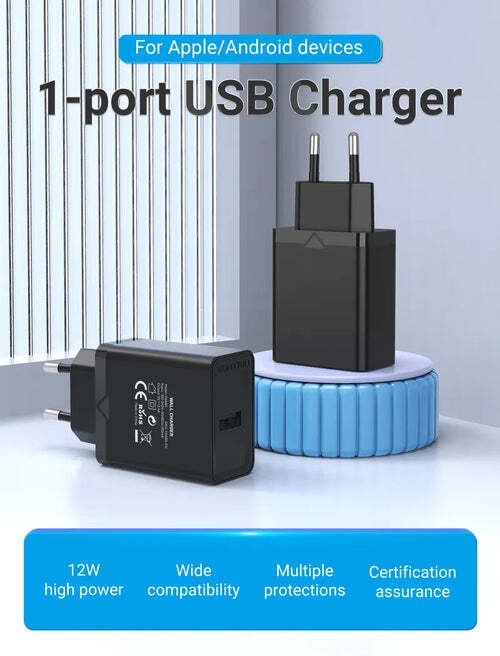 The Vention 1-Port USB Wall Charger is a compact power adapter designed for efficient everyday charging. Delivering up to 12W via a standard USB-A port, it’s perfect for powering smartphones, Bluetooth earbuds, smartwatches, and other USB-powered devices. With a UK 3-pin plug and a lightweight design, this charger is ideal for both home and travel use.