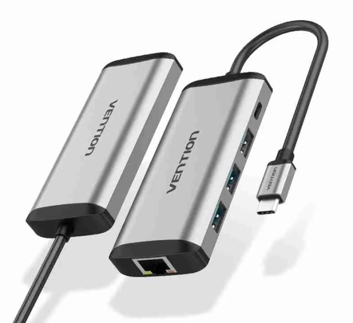 The Vention USB-C Multi-Functional 5-in-1 Docking Station is designed to simplify your connectivity needs. It expands your USB-C port into three high-speed USB 3.0 ports, a Gigabit Ethernet port for stable wired internet, and a USB-C PD port for fast charging. Whether you’re working from home, in the office, or on the go, this hub offers reliable performance in a compact and durable design.